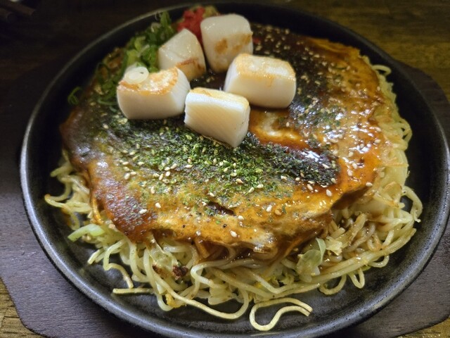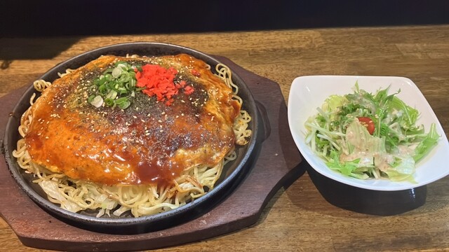 土曜日の開店時間12時に入店、一番乗りです^ ^ 遅めの開店なのでタイミングが合わず、やっと利用できました。 奥のカウンター席に座りメニューを見ると広島焼とサラダのトッピングによ... 詳細を見る