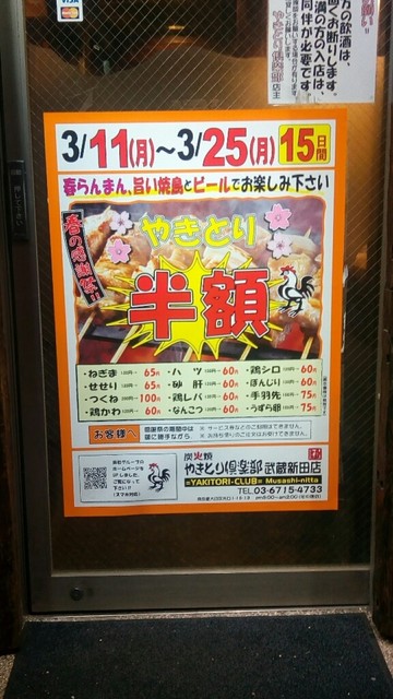 期間限定で、焼き鳥半額…。