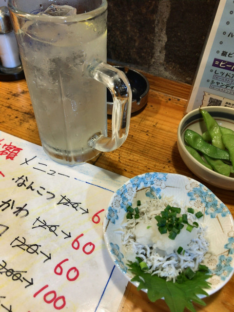 付け出しは枝豆でした。200円。...