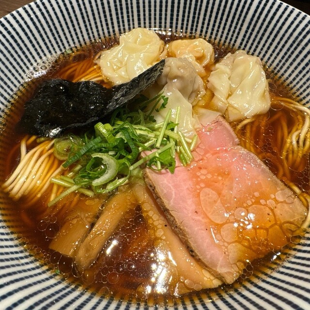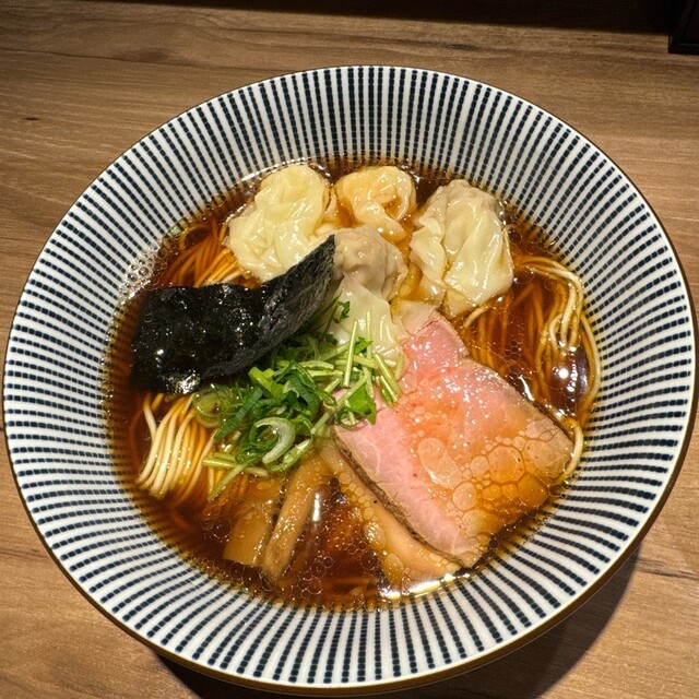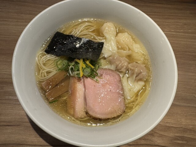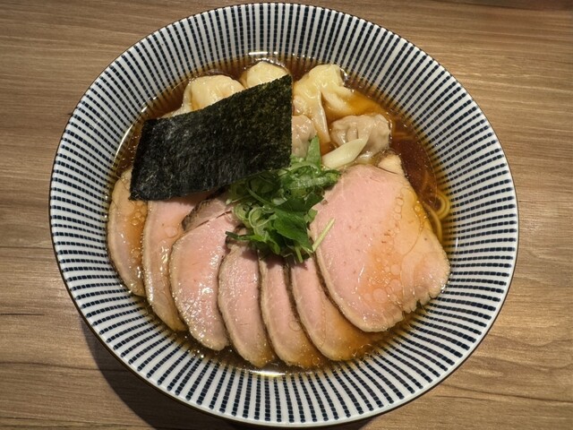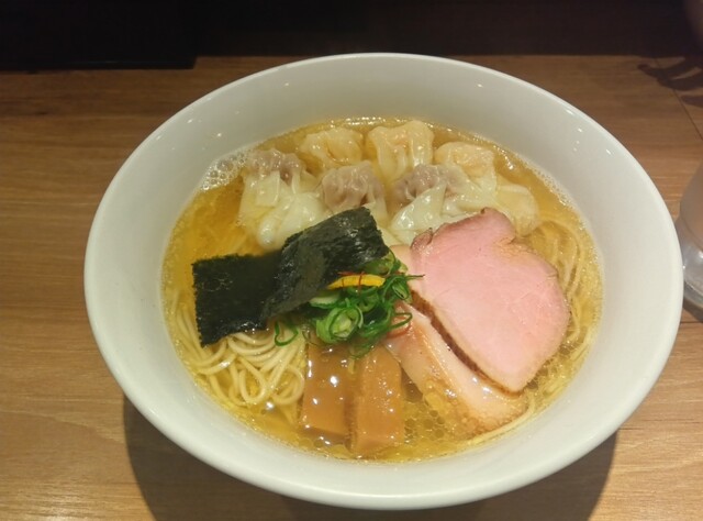 職場の休憩室が訳あって使用不可。なので、徒歩3分ほどの人気店で昼食です。入店は13時15分。まずは、券売機で食券購入。白旨特製つけsoba(1200円)に決定です。入口に近い席に座ります。7分ほどで着丼です。麺の丼、汁の丼、ワンタンの丼が運ばれてきました。麺は、並盛だと200gとのこと。喉越しの良い美味しい麺でワサビが添えられています。つけ汁は、白旨。白醤油ベースだそうです。黒旨...