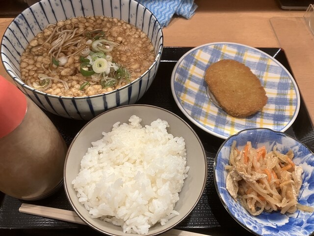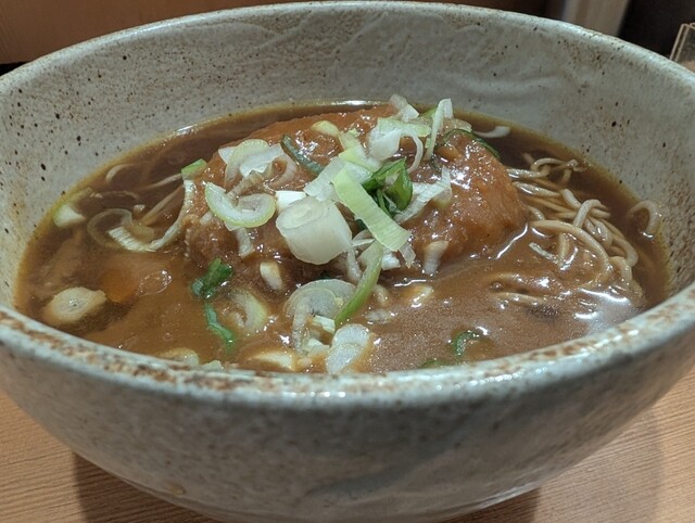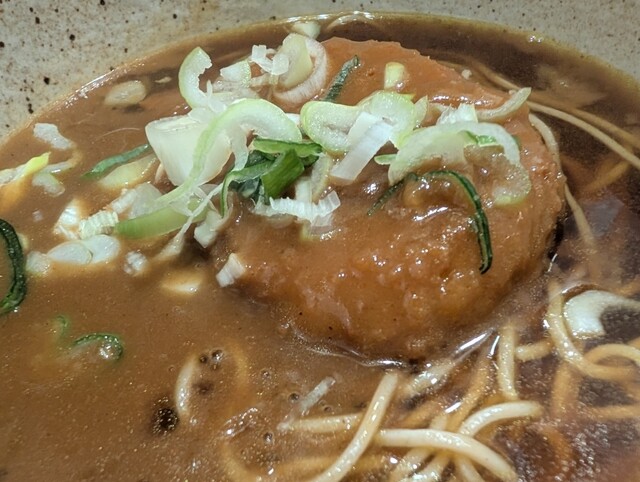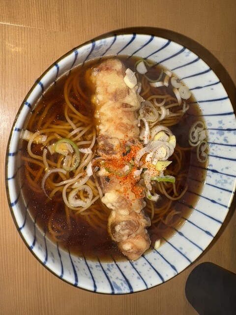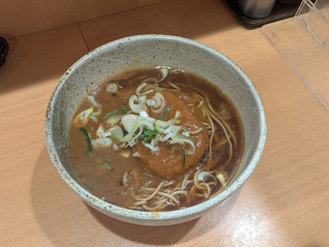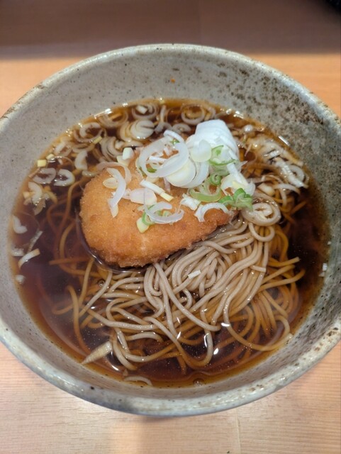 温そばがあっつあつでとても沁み入りました。コロッケは、違ったら申し訳ないけど、レンチンのような感じ。ソースが酸味があってオリジナル?なのか好きだったけど、そばのおいしさと対比がありすぎ...