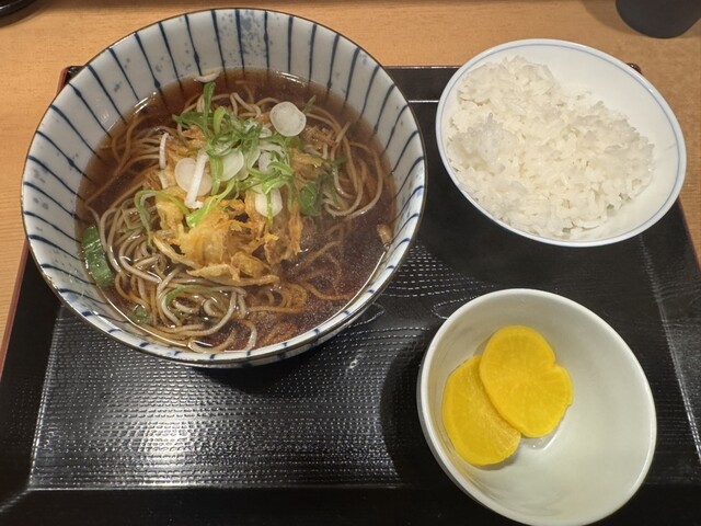 かき揚げ蕎麦350円に半ライス150円