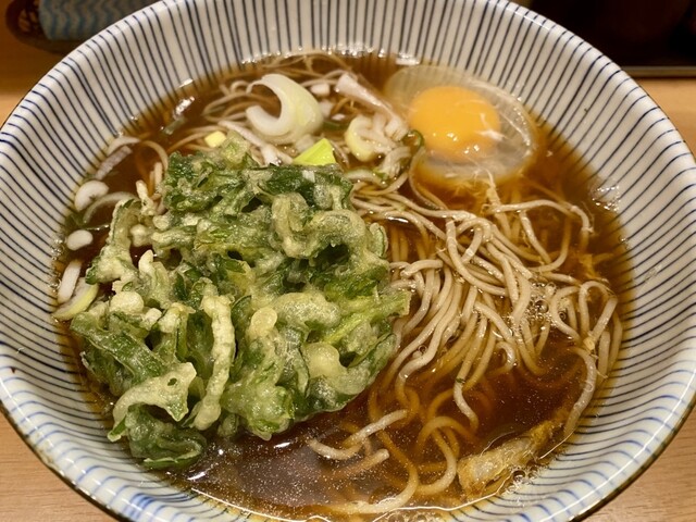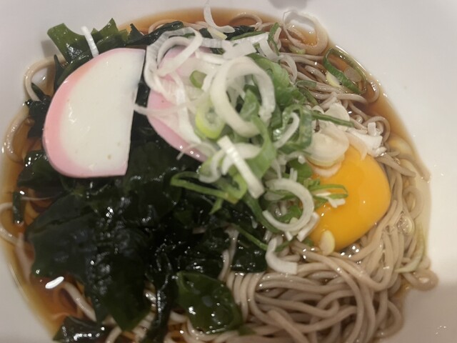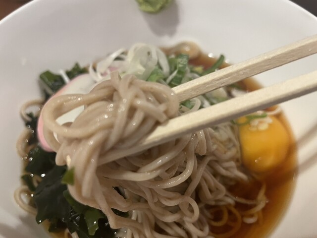 月見崩して天地返ししながらしっかり混ぜてちゅるり。そばウメー。絶妙な茹で加減で喉越し抜群。月見結果的に大正解で、...