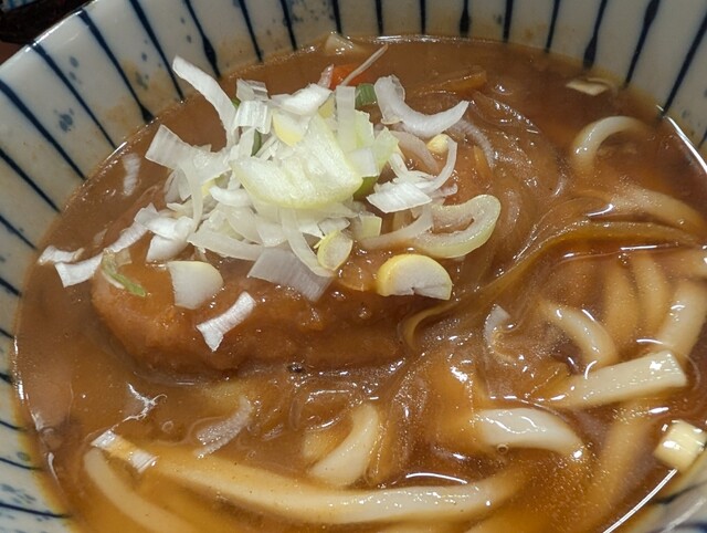 麺は細麺で甘めのアツアツの汁カリカ...