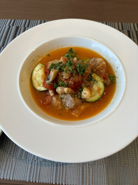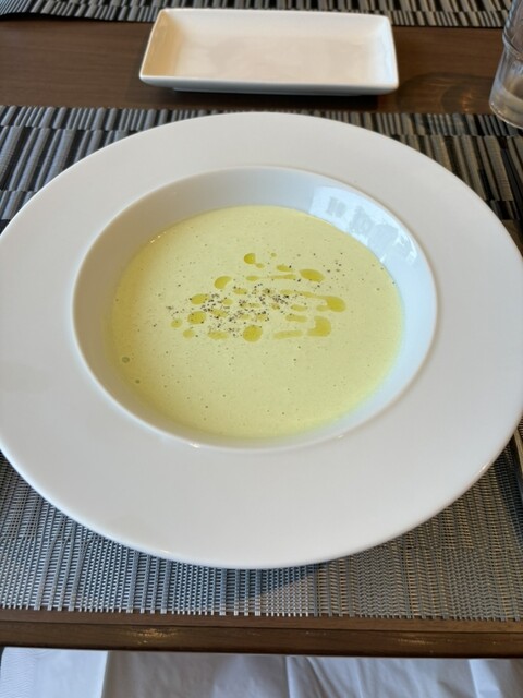 で、自分はテリーヌとスープ、メインは鮎のコン...