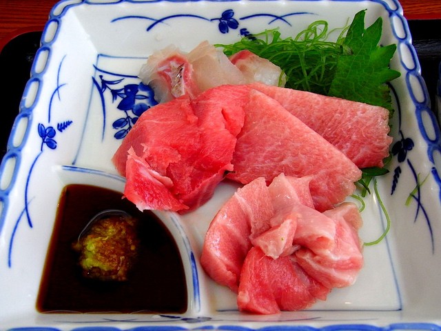 マグロの赤身、中トロ、つぶ貝、ほたて。
