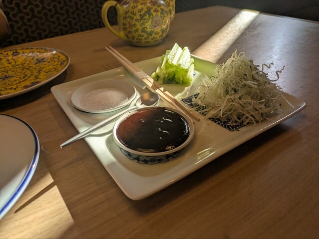 ご存じ中華の天才が営む代沢のグランメゾンです。 平日の夜に予約をしていきましたが、ほぼ満席です。 美味しそうなものを片っ端から注文します。 突き出しで、とびこのシュウマイ。 前菜で、白キクラゲの山椒和え、きゅうり、マグロとアボカドの甘酢醤油。 エビマヨ、エビチリ、油淋鶏、北京ダック、タケノコとアオサの炒め。 ごはんもので、海鮮あんかけ焼きそば(写真忘れ)、アサリと生姜のふ... 詳細を見る