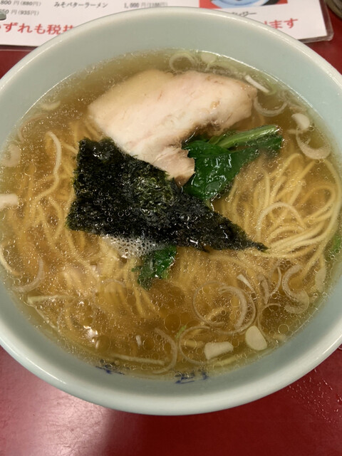 そしてラーチャン。ラーメンは昔ながらの鶏ガラが沁みるあっさりとした醤油ラーメン。いい意味でコショウを振りかけたくなるやつです。