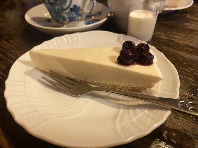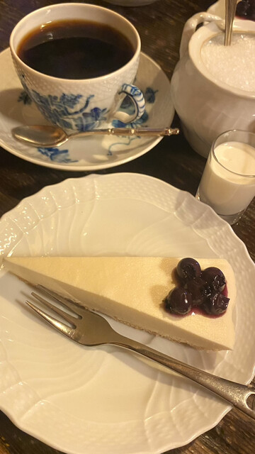 店内は昭和にタイムスリップしたような雰囲気。チーズケーキはなめらかな食感、ブルーベリージャムのアクセントが良かったです。コーヒーもすっきりとしていてケーキとよく合います。土曜の10:00過ぎだと待たず...