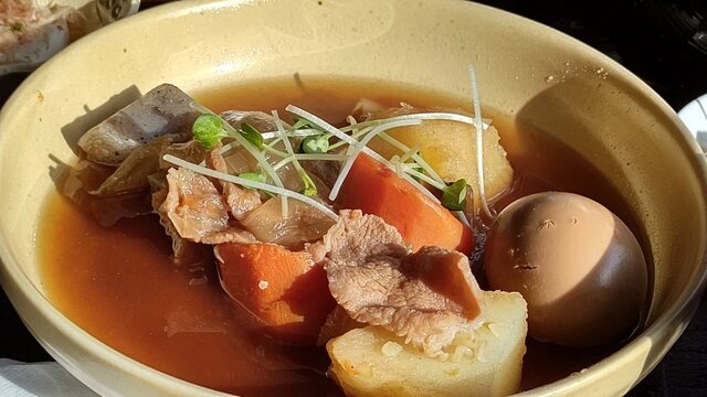 肉じゃがの汁がみりんがきっかりきいているのか甘さが強い