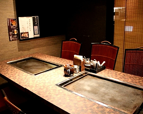 ゆったりのお席でくつろぎながら、目の前の鉄板でみんなと分け合って食べられる下北唯一のお店です☆