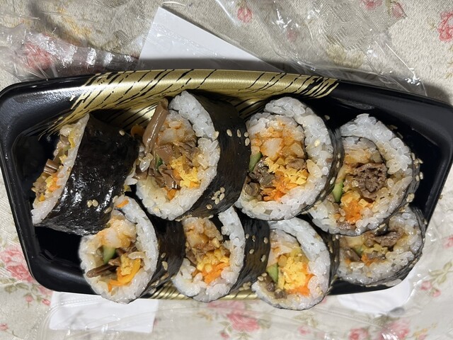 七種具材のキンパ。黒毛和牛・コシヒカリ使用。税別899円が半額。