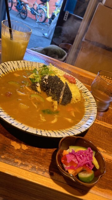 下北沢にあるカレー!漆黒のカツとシャバシャバカレーに幸福度爆上がり!!! ・バターでじっくり炒めた玉ねぎとスパイスを合わせ、自家製鶏がらスープで煮込んだ特製シャバシャバカレー... 詳細を見る