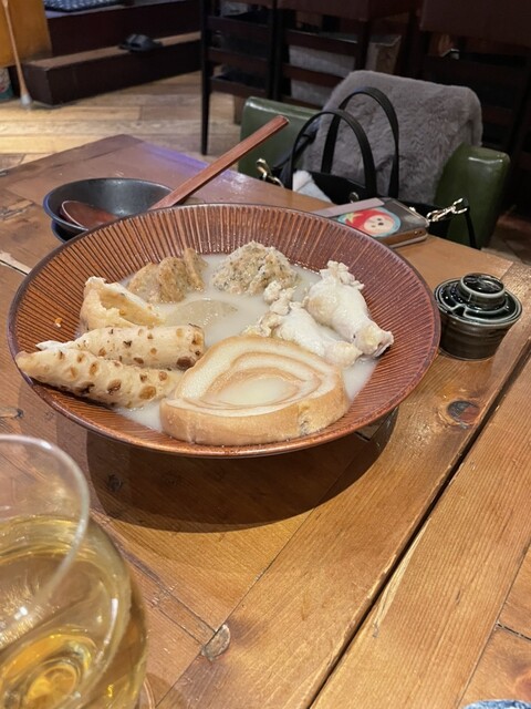 過去にひどいおでんを食べた友達と口直しに訪問。パイタン系のスープに、鳥手羽などがゴロリと入っており、食べ応えがすごく、他の料理をあまり食べれなかった。次回はもう少しお腹に余裕を持って伺いたい。ごちそう...