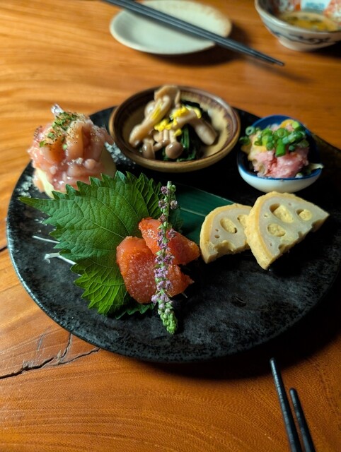 焼酎と追加モノ(レモンとか酢橘とか柚子胡椒とか...)が色々選べて楽しかった。