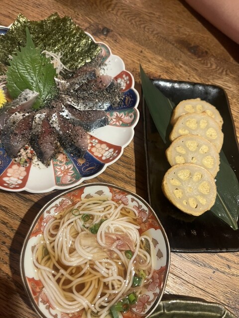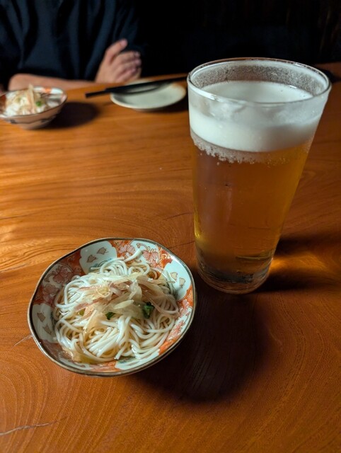 お通しが茗荷が乗ったそうめんで、夏にぴったりでした。