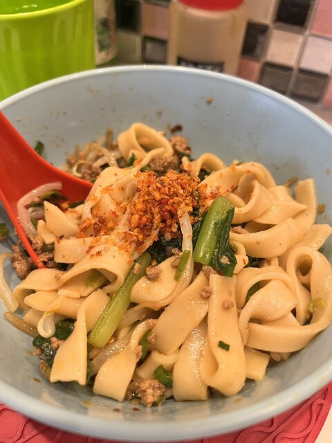 オリジナルはパンミーという汁なし麺ですが、この店ではアレンジしてジャパンミーと独自にネーミングしています。
