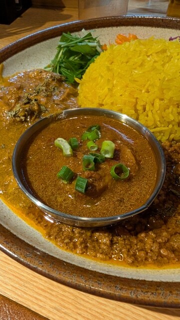 店主が独学で学んだスパイス料理が評判の同店。カレーにも拘り、聖地下北沢の他店と遜色ない、本格スパイスカレーを提供しております。 久しぶりの訪問で、前回2種あいがけを頂きました... 詳細を見る