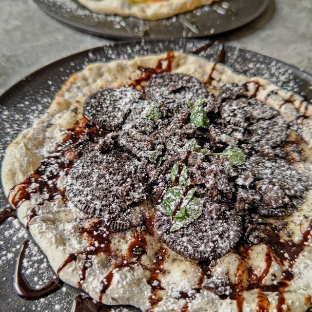 注文ごとに窯で焼き上げる、当店ならではの「デザートピザ」