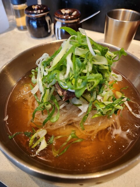 寒い季節だったのでお店の前にはコムタンなどの温かいメニューがフィーチャーされていましたが、冷麺もちゃんとありました。