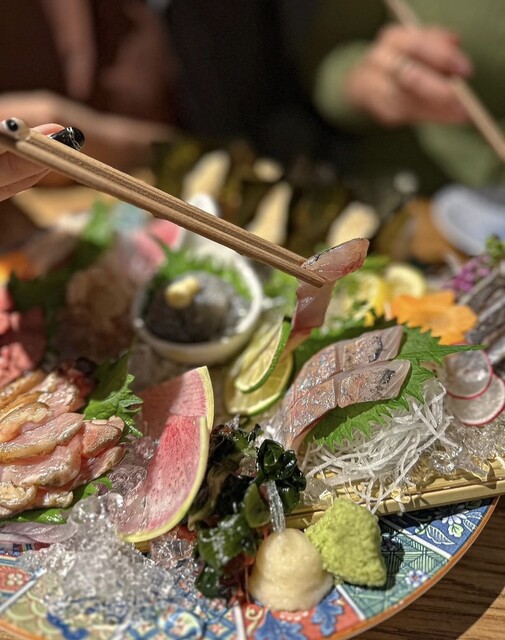鮮魚3種+肉刺し2種の豪華盛り✨見た目も華やかで写真映え抜群!