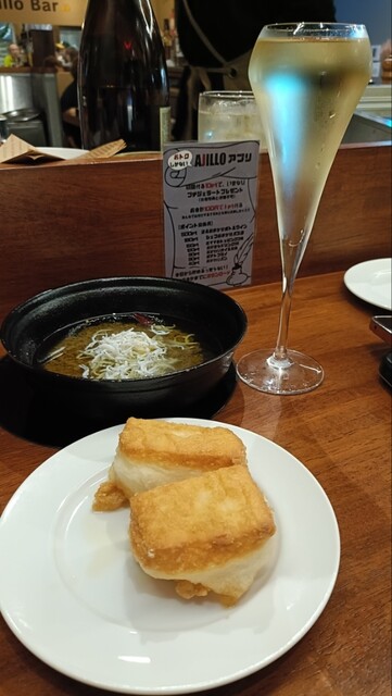 こちらのお店は、人気イタリアン「Alvino」が手掛けており、アヒージョだけでなく一品料理もしっかり美味しいのが魅力。今回は、お通しとして提供されるアヒージョオイル・シラス...