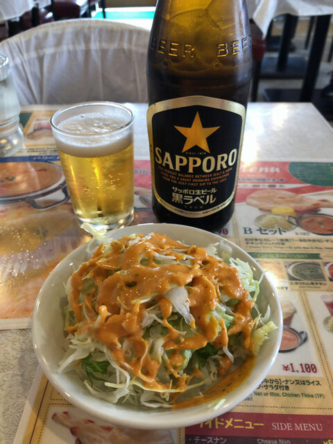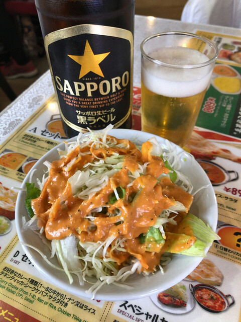 ドリンクはOKとのこと。瓶ビール中瓶550円均一で日本各社、インドにネパール、タイのビールが飲める。焼酎もあるし、店内にはホッピーのPOP短冊が...