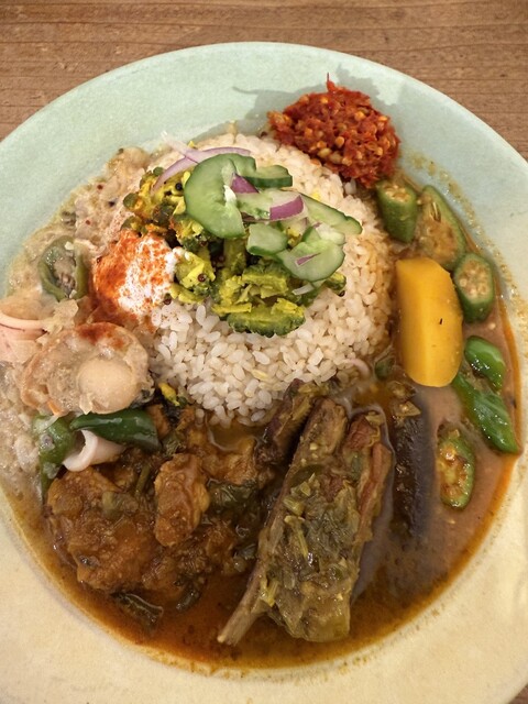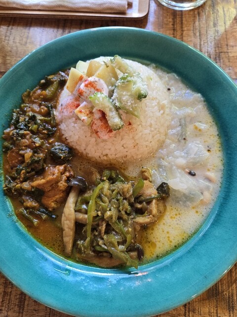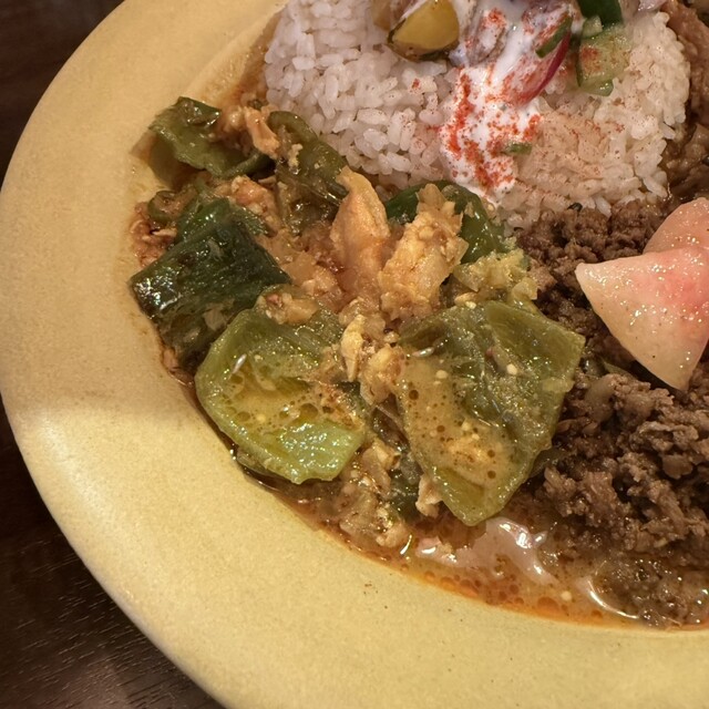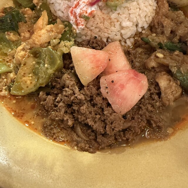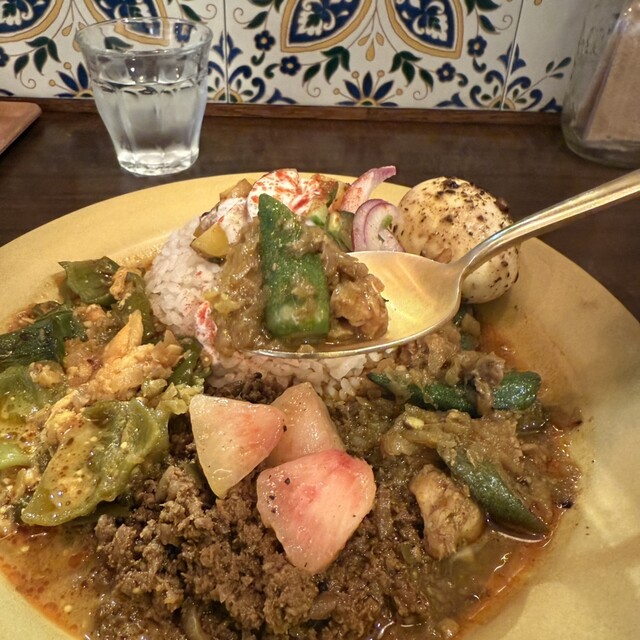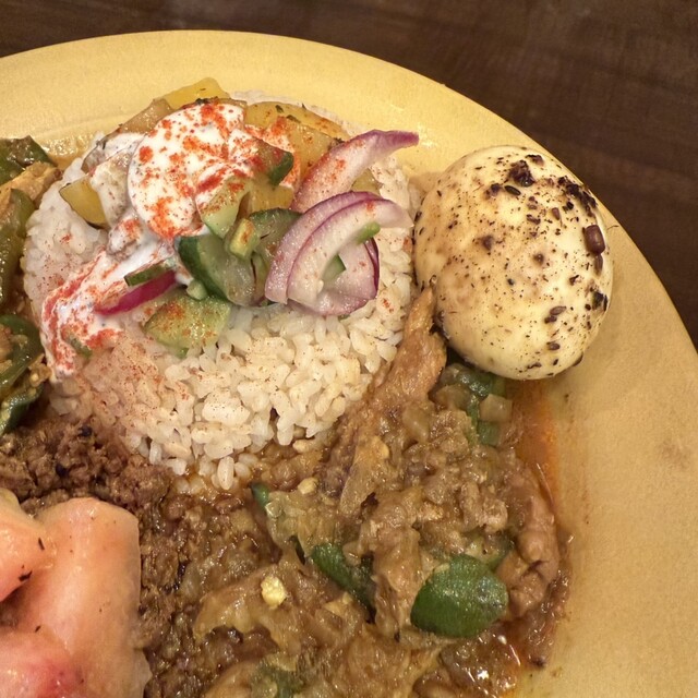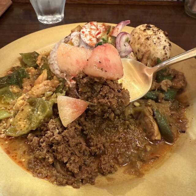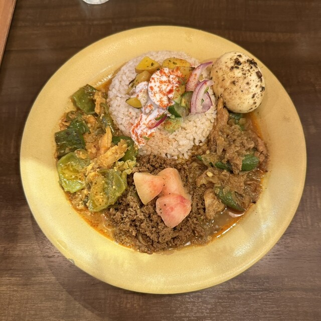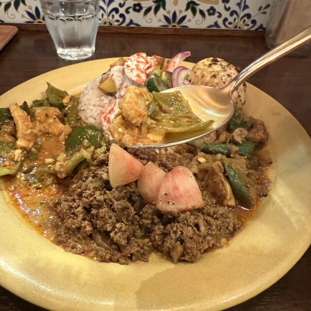 平日の12:34に訪問。近辺はオシャレな日本風なんだけれどもモダンな建物が並ぶ通りでとても雰囲気がいいです。 - 3種カレー 1900円 - 桃と鹿のキーマ +20... 詳細を見る