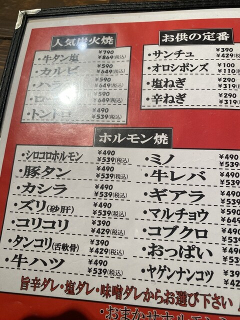 焼肉とホルモンが楽しめる、地元の人に愛されているお店です。店内は活気があり、元気になれるような雰囲気でした。特に気に入ったのが、コリコリとした食感のナンコツと、自家製のタレでいただくホルモンです。肉の...