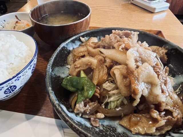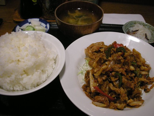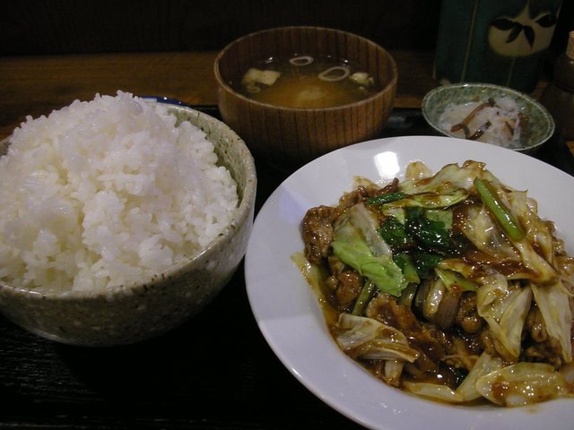 メインのおかずがすごいボリュームとわかっているのでご飯は少なめにして「キャベツ豚肉味噌炒め」を注文。(税込900円だったかな。)ここの普通盛りご飯もかなりのボリュームなので、あまり食べない人は少なめがお勧めかな。