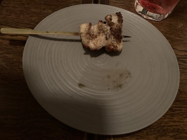 1串200円台で、丁寧な焼き加減、お肉の質の良さ、保存もきちんとされてるのだろう。料理はとても美味しかった。表面に塗...