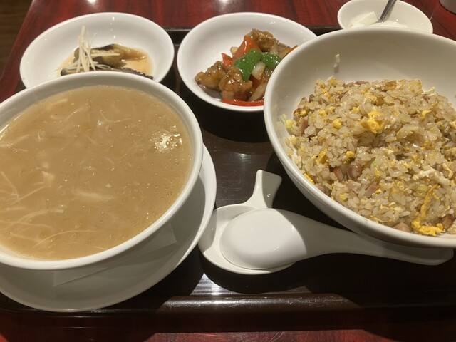 日曜日昼に訪問。開店前から行列が出来ているも、何とか第一陣で来店。奮発してFセット3,000円を注文。チャーハンとフカヒレスープの巨大さに驚かされる。焼きチャーハンは正統派の味付けでバクバクいってしま...