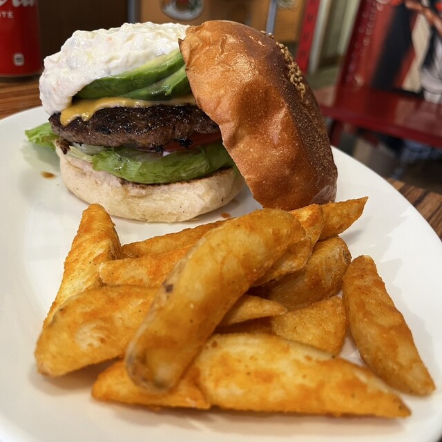アボカドチーズバーガー、ドリンクセット1,765円をいただきます。 平日12時過ぎ。先客1組。久々6年振り。 パテは薄め。牛肉特有のいい香りがします。アボカドにタルタルソースが... 詳細を見る