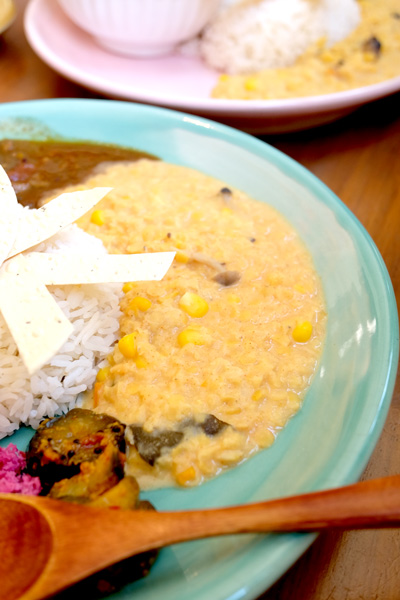 どちらも優しい味でおいしかったのですが、意外となめこもあって、和とスパイスの融合が絶妙で、ヘルシーな感じでうれしかったです!