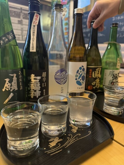 日本酒の利酒セットがこんなにも破格で飲めるお店はなかなかないと思います。沢山注いでくれるし、おつまみもおいしいのでおすすめしたい。特におつまみは麻婆春雨が良きです。ボリューミーでお腹いっぱいになれるので仕事終わりに行くのをおすすめします。