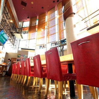 10メートル近くある高い天井と自然光がサンサンと降り注ぐ全面ガラス張りの店内