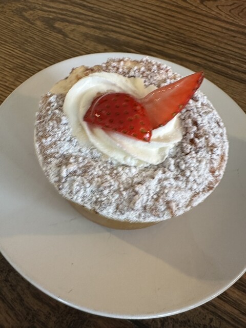 店頭で売っているスイーツと珈琲を店内で食すると¥1,250-らしく、イチゴ・グラタンなる温かいスイーツとでも、冷たいローズヒップゼリーとでもセットにしてくれて同じ値段でした。イチゴ... 詳細を見る