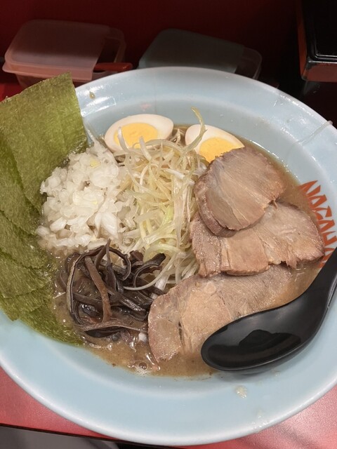 先日豚骨醤油を食べてハマってしまった[長浜ラーメン] 今回は味噌豚骨に挑戦! 本日は祝日という事もあり到着時は満席で3人待ち。しかし豚骨ラーメンなので回転は早く、五分ほ... 詳細を見る