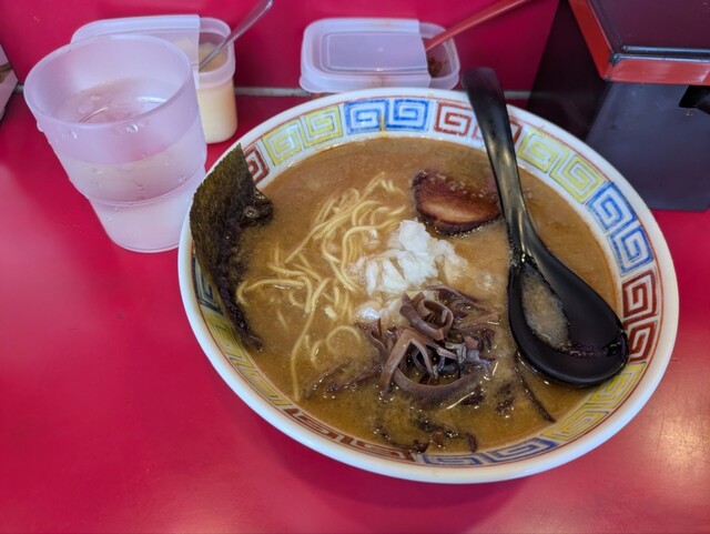 店主さんに聞いたところ、とんこつ正油がおススメとのことなので、とんこつ正油にします。