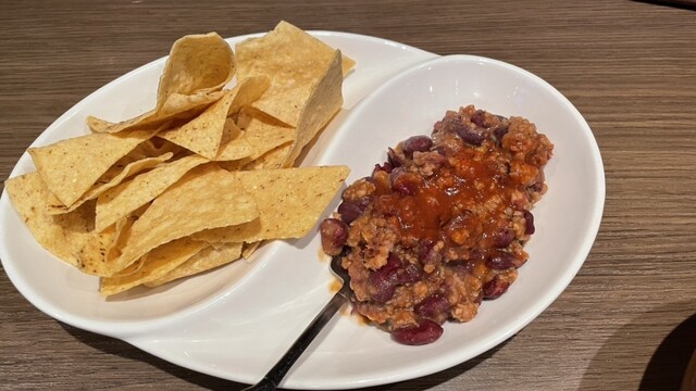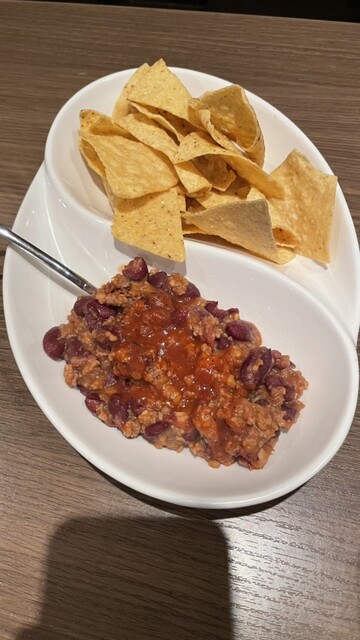 続いてチリビーンズ。トルティーヤチップスが添えられていた。チリ自体は辛さも無く至ってマイルド。ちょっと子供っぽい味で満足度はイマイチ。チリソースでもあればスパイシーにするのだが。
