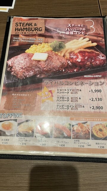 ライバルコンビネーションのショートリブ150g&ハンバーグ150g(1,990円)