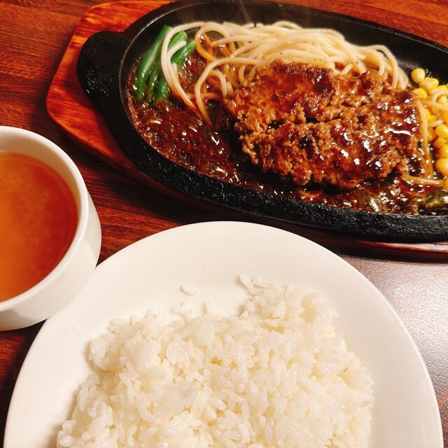 今回は「サービスハンバーグ」を注文。ほどよ...