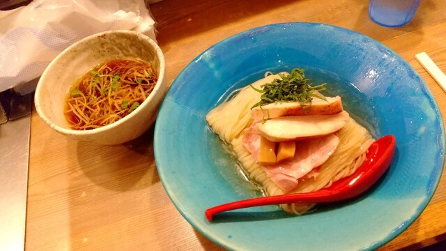 平日の12時に到着。場所は千歳烏山駅西口から徒歩1分。 目の前は喜多方ラーメンの「喜多方ラーメン坂内 千歳烏山店」。 メニューは昆布水つけ麺と中華そば、濃厚魚介つけ... 詳細を見る