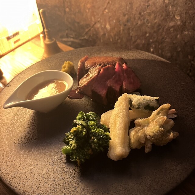 黒毛和牛A5ランク(産地、部位は仕入れ状況により異なります)の ローストがメインの大変お得なコースになります 希少な黒毛和牛ですので是非ご賞味下さい!