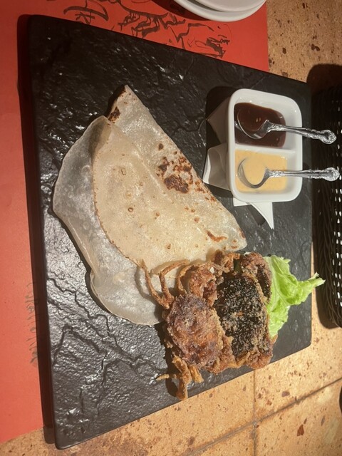 イルキャンティといえば、ソフトシェルクラブ...お味2種類で半分ずつにカットしてくださってるご配慮ありがたい。この北京ダックみたいな生地に包んでいただくスタイル好きです。