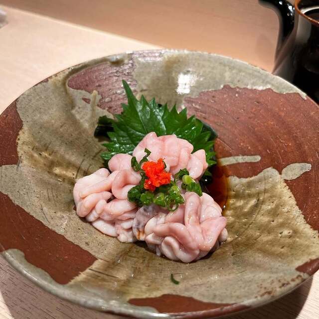 白子ポン酢は、ぷるんとしたクリーミーな白子に紅葉おろしとねぎが添えられていて、口に入れるととろけるような食感が...