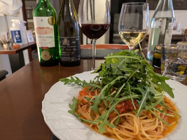 野生ルッコラの味が濃く、トマトソースとよく合っていた