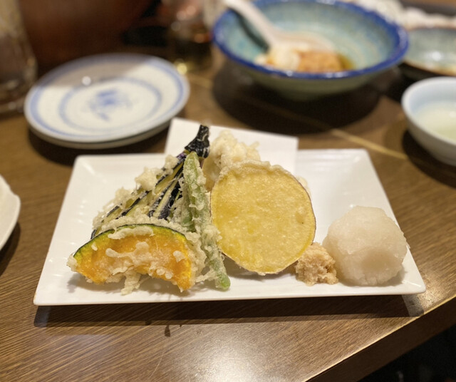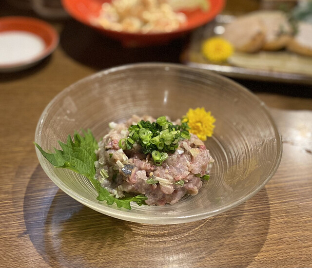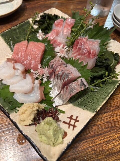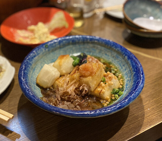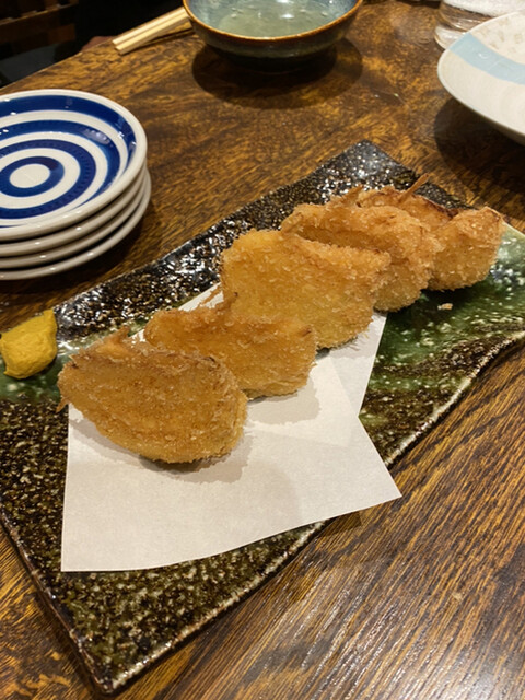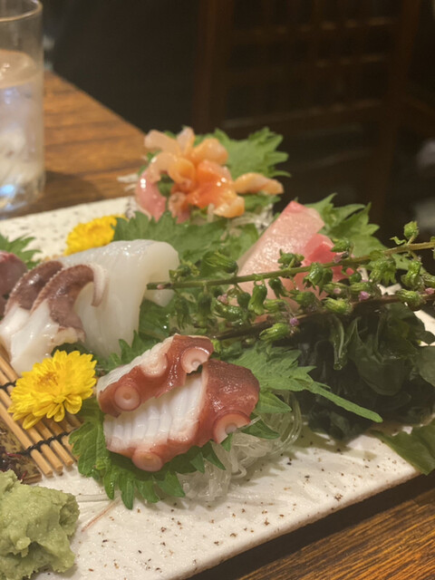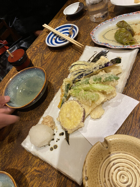 まずお通しのレベルがおかしい。豚軟骨と卵?の角煮みたいなものだったが、とんでもなく美味い。最初から期待を超えてくる。芋芋サラダ、ピーマンの肉味噌、菜の花と昆布の和物、お造り盛り合わせ4種、唐揚げ、カキフライ、天ぷら盛り合わせをオーダー。揚げ物はかなり時間がかかる、1時間以上はかかったので注意。事前にアナウンスありましたが。賑わっており予約はして...