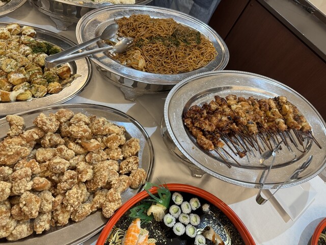 副都心から都心までの夜景を一望にできる抜群のロケーションと,寿司,焼きそば,焼き鳥,たこ焼きなどの鉄板のメニューに,発泡酒を含むアルコール類のラインナップ.楽しい懇親会を過ごすことができました.スタッフのホスピタリティも好感が持てました.