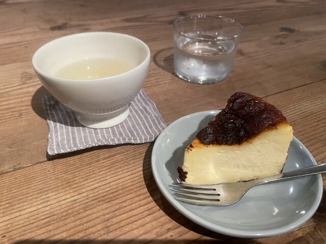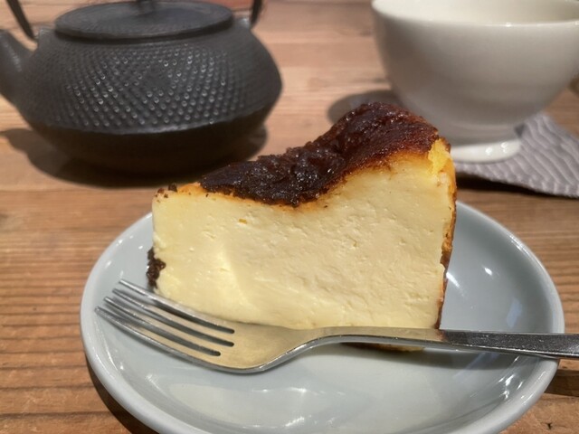 代々木八幡にあるホルンのバスクチーズケーキが頂けます。表面黒く焼かれていて内側はほのかな酸味がありクリーミー。ねっとりというよりふぉわっとしてて軽い食感でした。